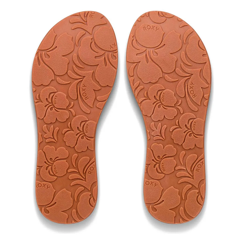 Sandały damskie z teksturowaną wkładką EVA z wytłoczonym motywem artystycznym ROXY oraz gumową podeszwą zewnętrzną z klasycznym kwiatowym nadrukiem ROXY