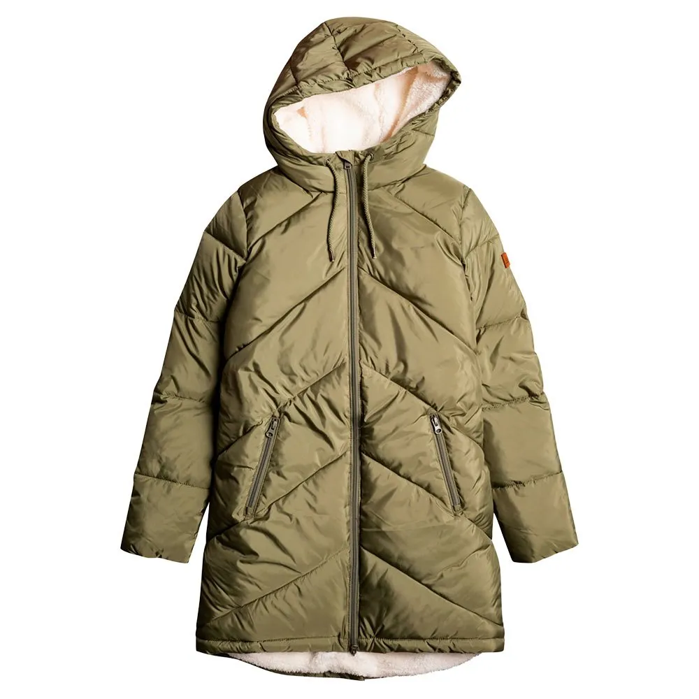 Zapięcie na suwak z przodu, pikowanie Chevron, ściągacz na kapturze, zamszowa naszywka ROXY.
