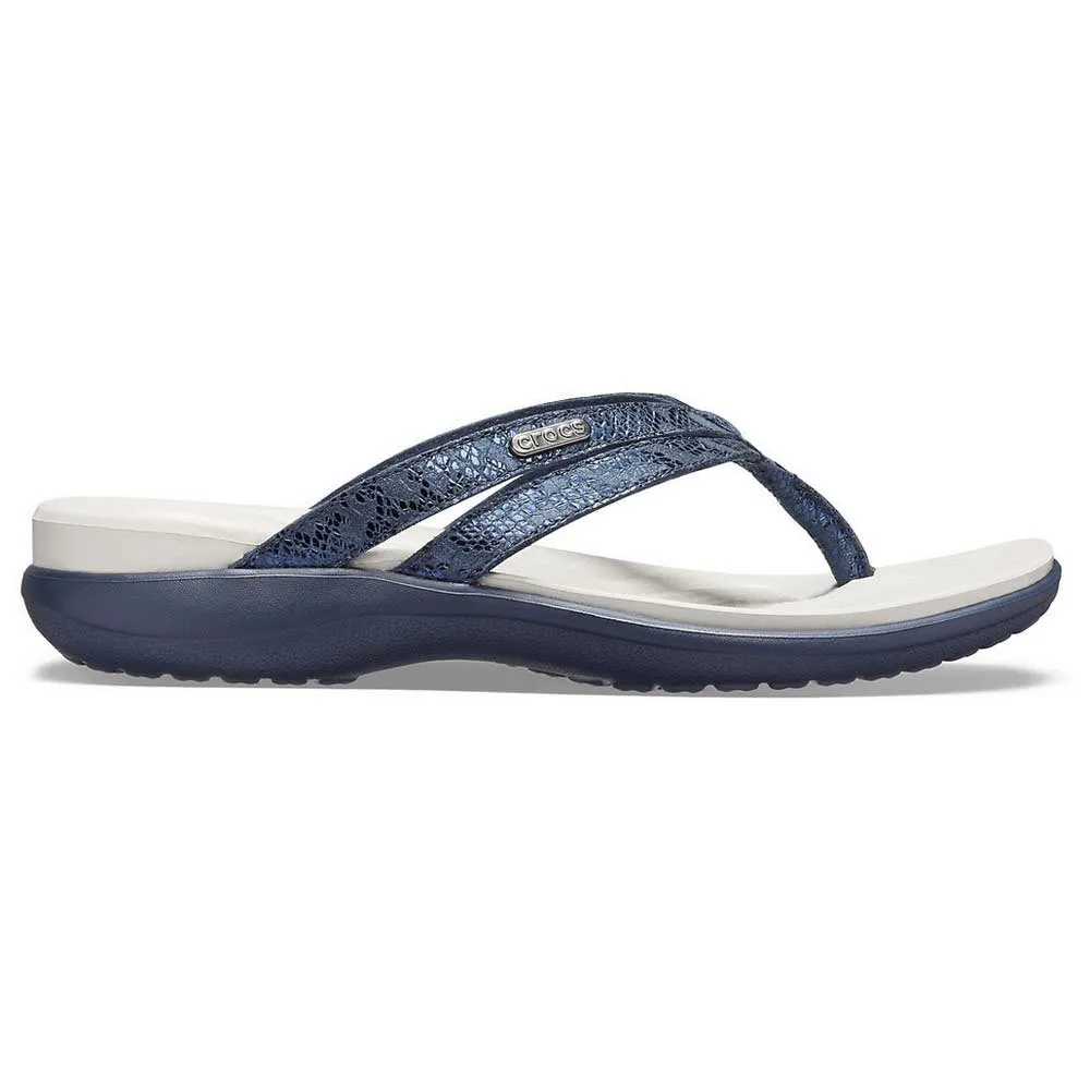 O Capri, uma das nossas sandálias favoritas dos fãs, ganha uma divertida reforma nesta edição de alça dupla. Alças de microfibra macias, com um novo padrão metálico sintético no topo. Projetado com uma palmilha Dual Crocs Comfort ™ mais espessa, um berço de salto profundo e uma sola de espuma Croslite ™ para amortecer cada etapa, é o flip casual que você pode usar em qualquer lugar e se sentir tão bem quanto parece.