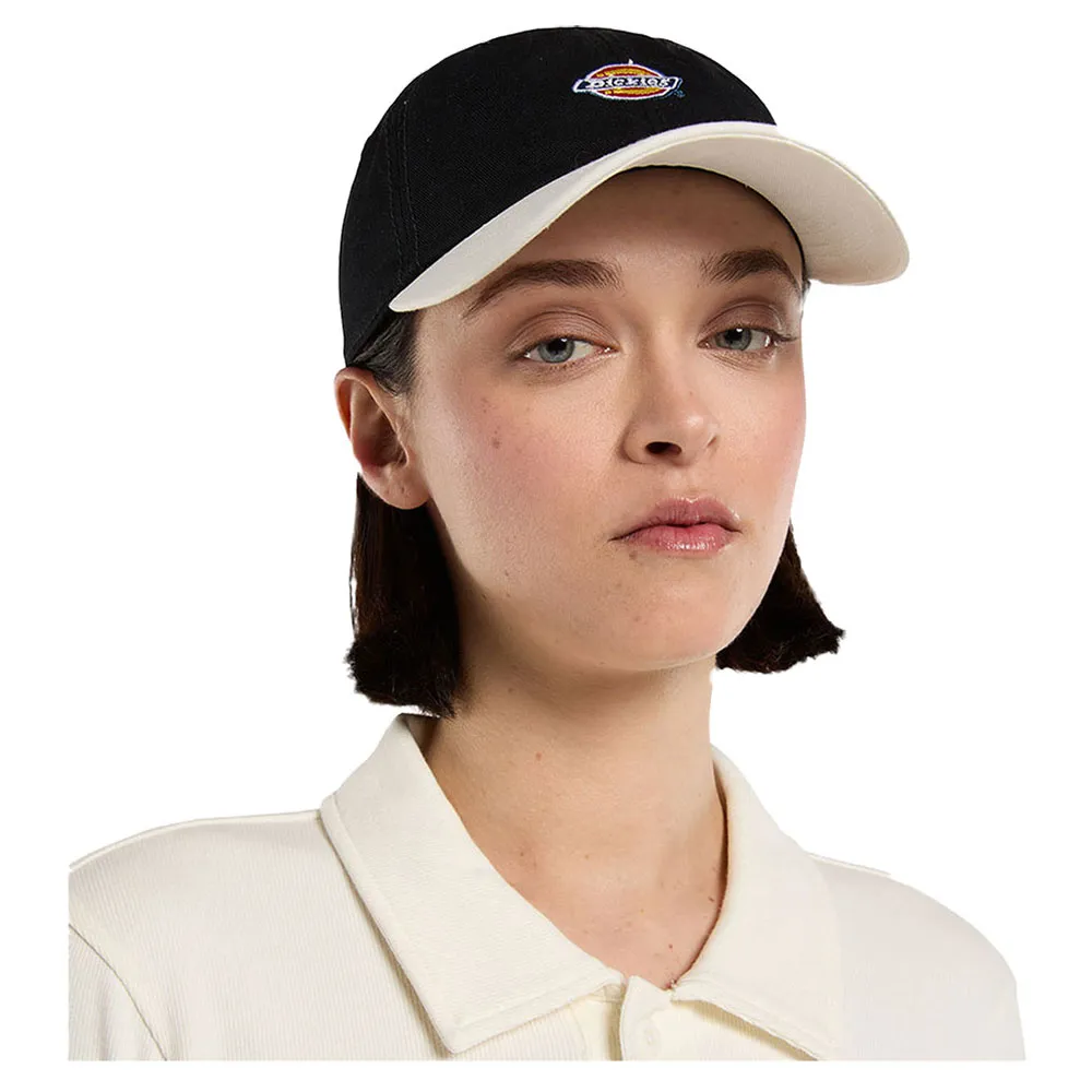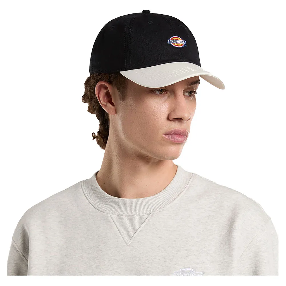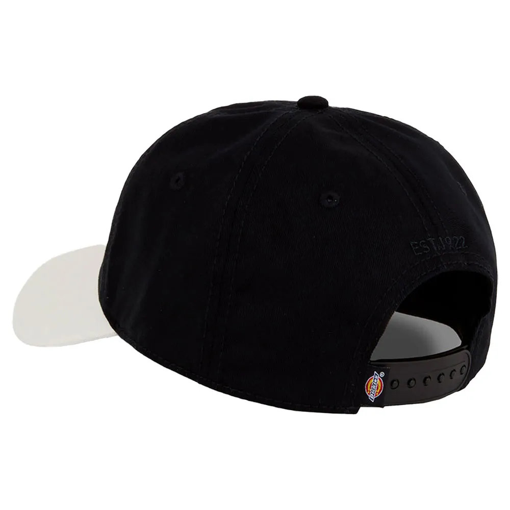 Feito de sarja de algodão resistente com fecho snapback, painéis em dois tons, costura superior na aba e bordado clássico do logotipo da Dickies na frente.