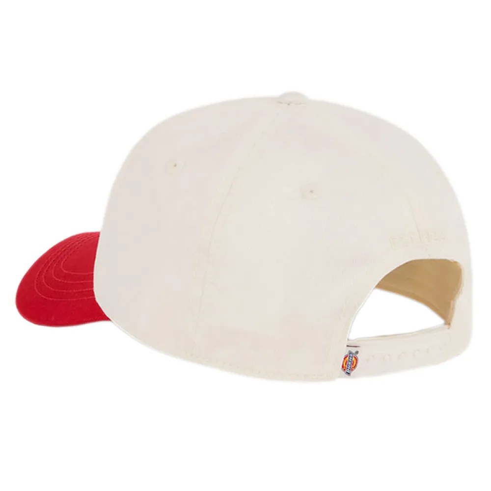 Feito de sarja de algodão resistente com fecho snapback, painéis em dois tons, costura superior na aba e bordado clássico do logotipo da Dickies na frente.
