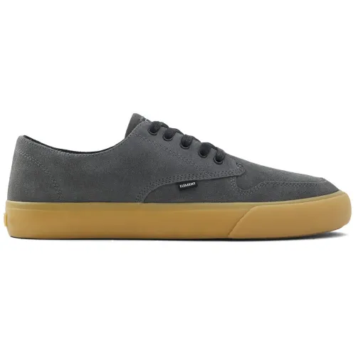 Modelo de tênis Asphalt Gum Elemet Topaz C3 na cor cinza. Gostaria que confirmassem se este modelo é confeccionado em couro/split. Obrigado e cumprimentos