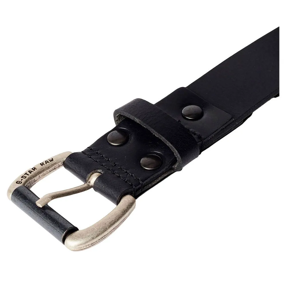 Este cinto Dast apresenta uma fivela de metal fundido com rolo escuro. A pulseira de couro de flor integral é reforçada com rebites e oferece um amplo laço coletor. A extremidade do cinto apresenta um gráfico G Star RAW em relevo semelhante à fivela.