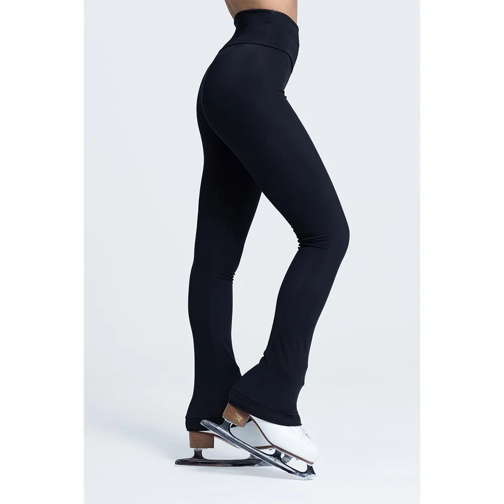 Calças de patinagem Intermezzo com cobertura para botas, cintura alta, tecido aveludado e faixa de silicone.