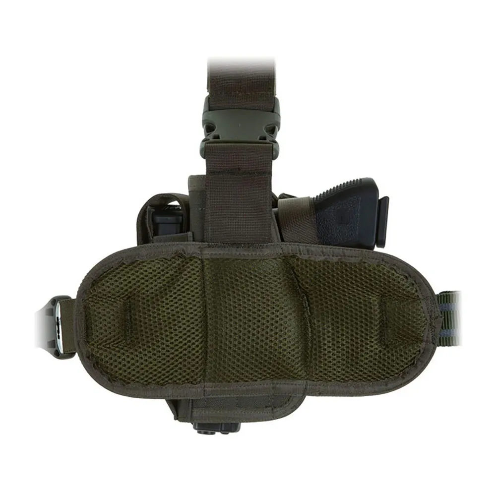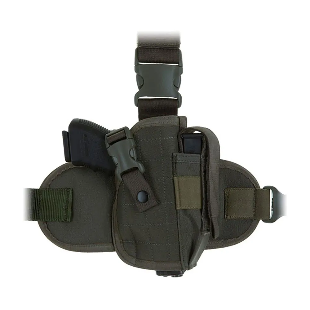 Coldre de perna universal projetado para caber em uma ampla gama de pistolas de tamanho médio, como por exemplo Glock 17 ou Beretta 92. É equipado com porta-carregador integrado e painel de perna integrado preso com um clipe de cinto e três tiras elásticas antiderrapantes na coxa.