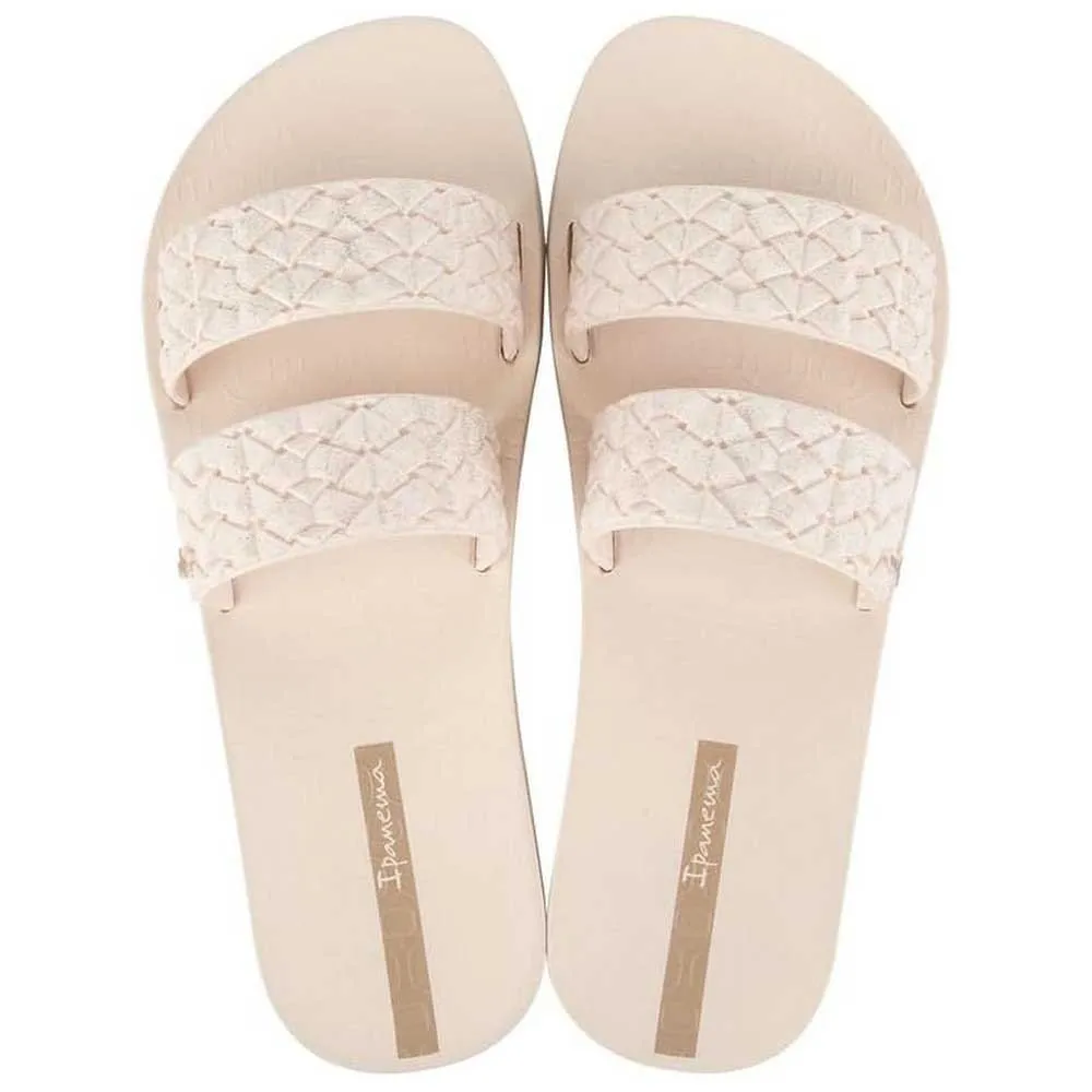 O conforto é primordial no design do IPANEMA Renda II. Indo além da construção convencional de uma única tira, este chinelo apresenta uma configuração inovadora de alças. As duas tiras envolvem o pé e proporcionam muito conforto. Este design de tira dupla não só oferece um ajuste mais seguro e estável ao caminhar, mas também cria uma silhueta visualmente atraente no pé. As tiras são feitas de um material macio e flexível que abraça suavemente o pé sem atrito ou desconforto, permitindo o uso prolongado sem fadiga. Combinados com uma palmilha anatomicamente moldada, estes chinelos oferecem suporte suave e amortecimento a cada passo, tornando-os a escolha ideal para uso o dia todo durante suas férias ou atividades de verão diárias.