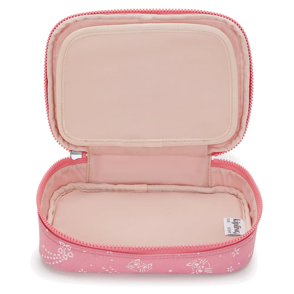Organize seus itens essenciais com estilo com o Estojo Kipling 100 Pens. Sua capacidade impressionante comporta até 100 canetas, lápis ou marcadores, mantendo você preparado para qualquer tarefa criativa. Feito do nylon amassado resistente à água característico da Kipling, este estojo durável protege seus objetos de valor contra derramamentos e impactos. A ampla abertura com zíper oferece fácil acesso a um interior totalmente forrado com um prático bolso deslizante. Versátil o suficiente para materiais de arte, maquiagem ou acessórios tecnológicos, e finalizado com o icônico chaveiro de macaco da Kipling, é o companheiro perfeito para estudantes e artistas em movimento
