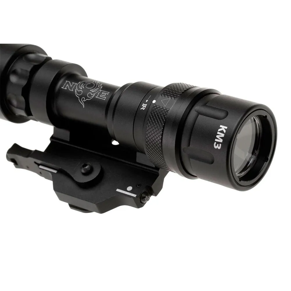Domínio de Espectro Duplo: Alterne instantaneamente entre uma poderosa luz branca para busca e desorientação e um iluminador IR furtivo para operações secretas com equipamentos de visão noturna.