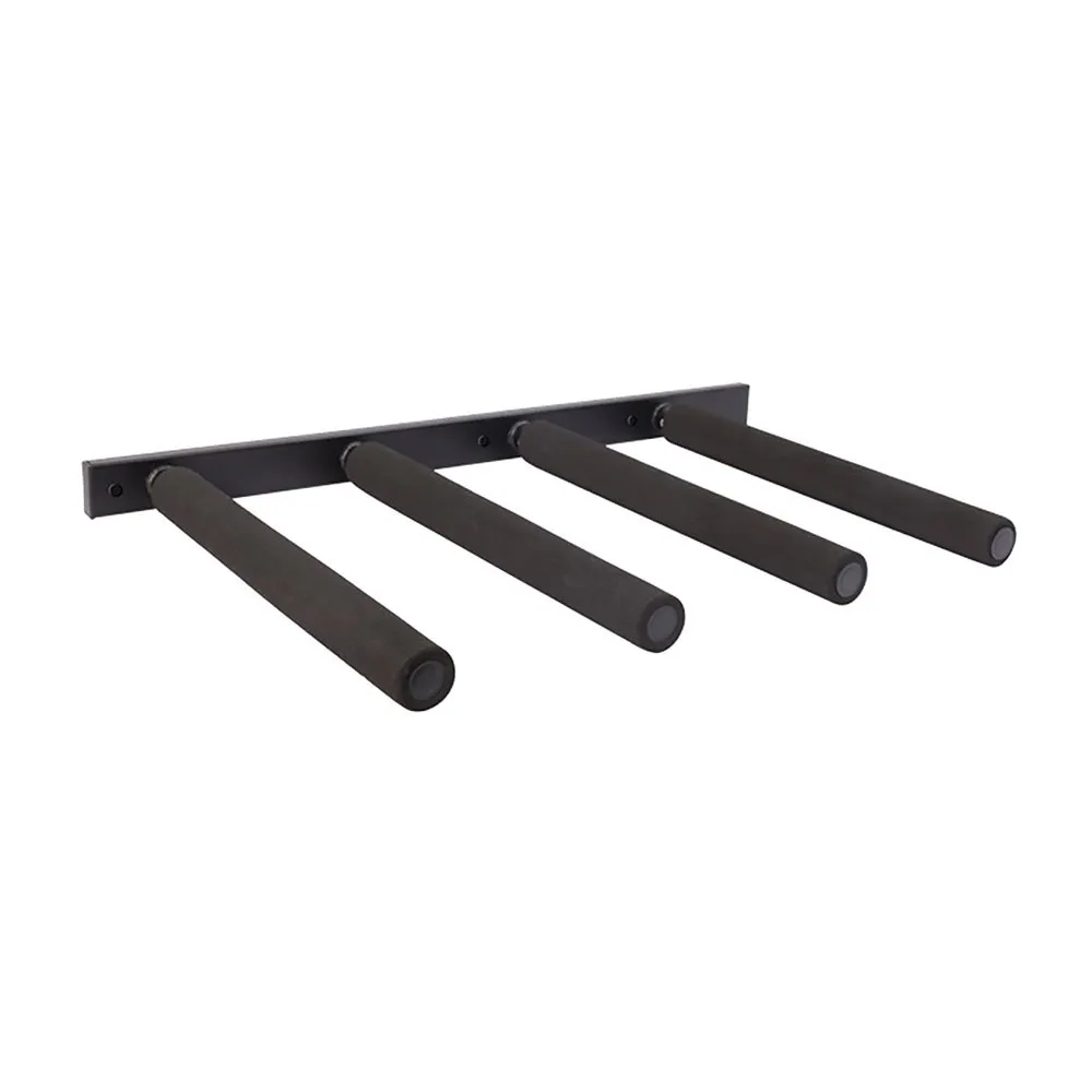 Este rack de prancha de surf acomoda 4 pranchas e é facilmente montado na parede com o pacote de hardware e as instruções fornecidas.