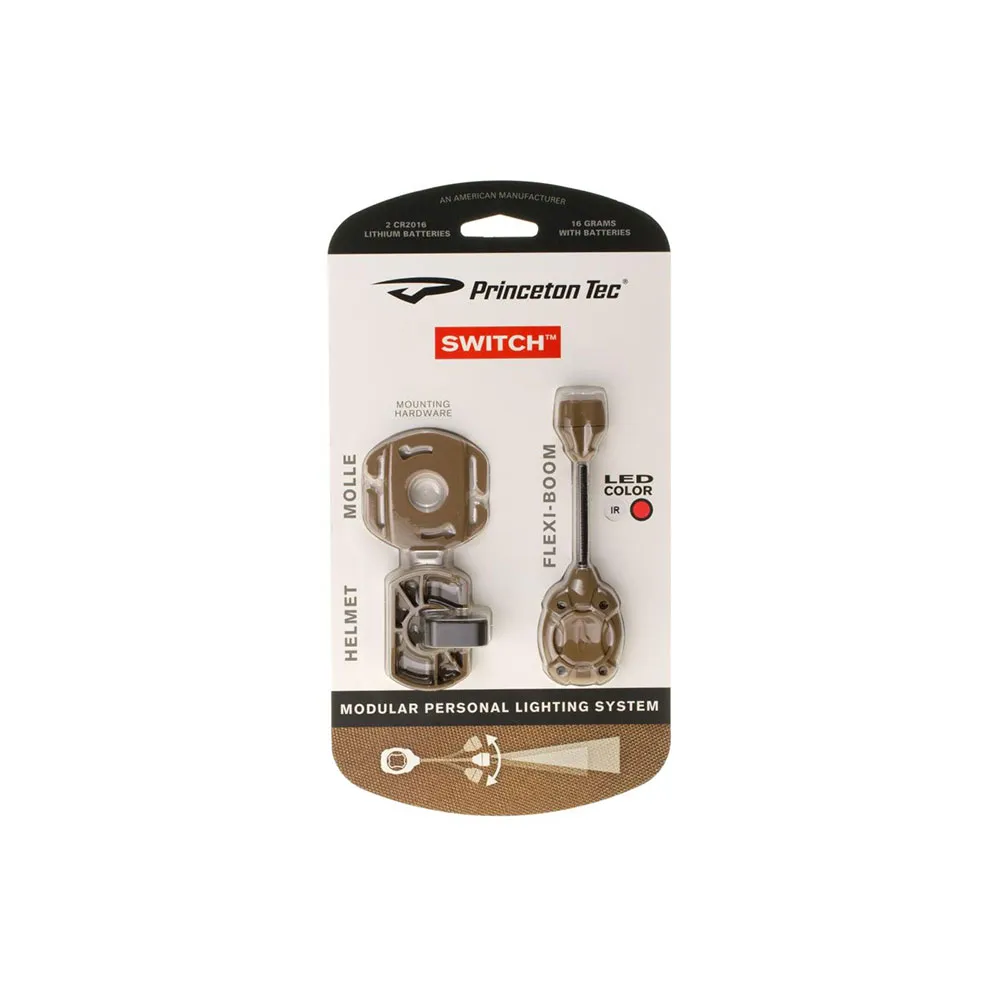 Duas baterias CR2016 fornecem energia para a lanterna de cabeça. Um botão superior é usado para operar e alternar os modos da lanterna. O versátil sistema de montagem da Princeton Tec é integrado ao Switch MPLS. Esta solução permite a fixação em plataformas PALS/Molle, ARC e trilhos Picatinny. Um braço flexível permite direcionar a fonte de luz na direção correta. Com dimensões supercompactas e baixo peso, a Switch MPLS é uma perfeita "luz tática" para aplicações militares.