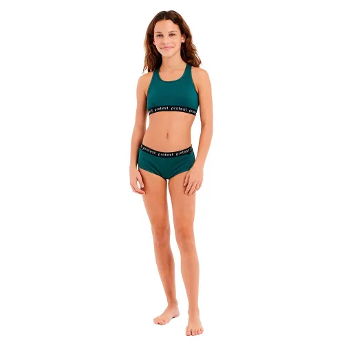 Esportivo e lindo, o PRTBEAU JR da Protest é o biquíni perfeito para sua ação de verão. Este biquíni feito de um tecido texturizado. A parte de baixo do biquíni tem um caimento moderno. A parte superior do biquíni tem enchimento removível em tamanhos e tem um estilo nadador nas costas. O tecido também é livre de PFC em um esforço para reduzir o uso desse produto químico e, portanto, prejudicar o meio ambiente. Esteja pronto para a praia no PRTBEAU JR by Protest.