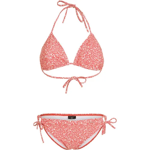Arrase com o biquíni triângulo PROTEST Citra. Este vibrante conjunto de duas peças combina um estilo marcante com conforto excepcional para os seus dias junto à água. Apresenta um top triângulo clássico com alças ajustáveis no pescoço e nas costas para um ajuste perfeito e personalizado, combinado com uma parte de baixo favorecedora que oferece cobertura moderada. Confeccionado em tecido sintético de alta qualidade e secagem rápida, é macio ao toque na pele e feito para durar. O material durável e resistente ao cloro garante que a estampa divertida permaneça vibrante estação após estação
