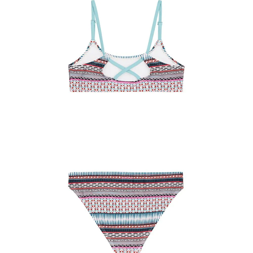 O top bralette†† com alças cruzadas nas costas apresenta uma estampa incrível em cores vibrantes de verão! O top tem um design envolvente, então não há necessidade de um fecho nas costas.