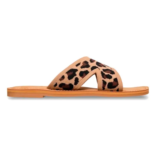 Cabedal: Tecido em malha com estampa de leopardo, Palmilha: Couro sintético, formato quadrado com contorno no calcanhar para maior conforto, Solado: Borracha para maior tração em superfícies molhadas e secas.