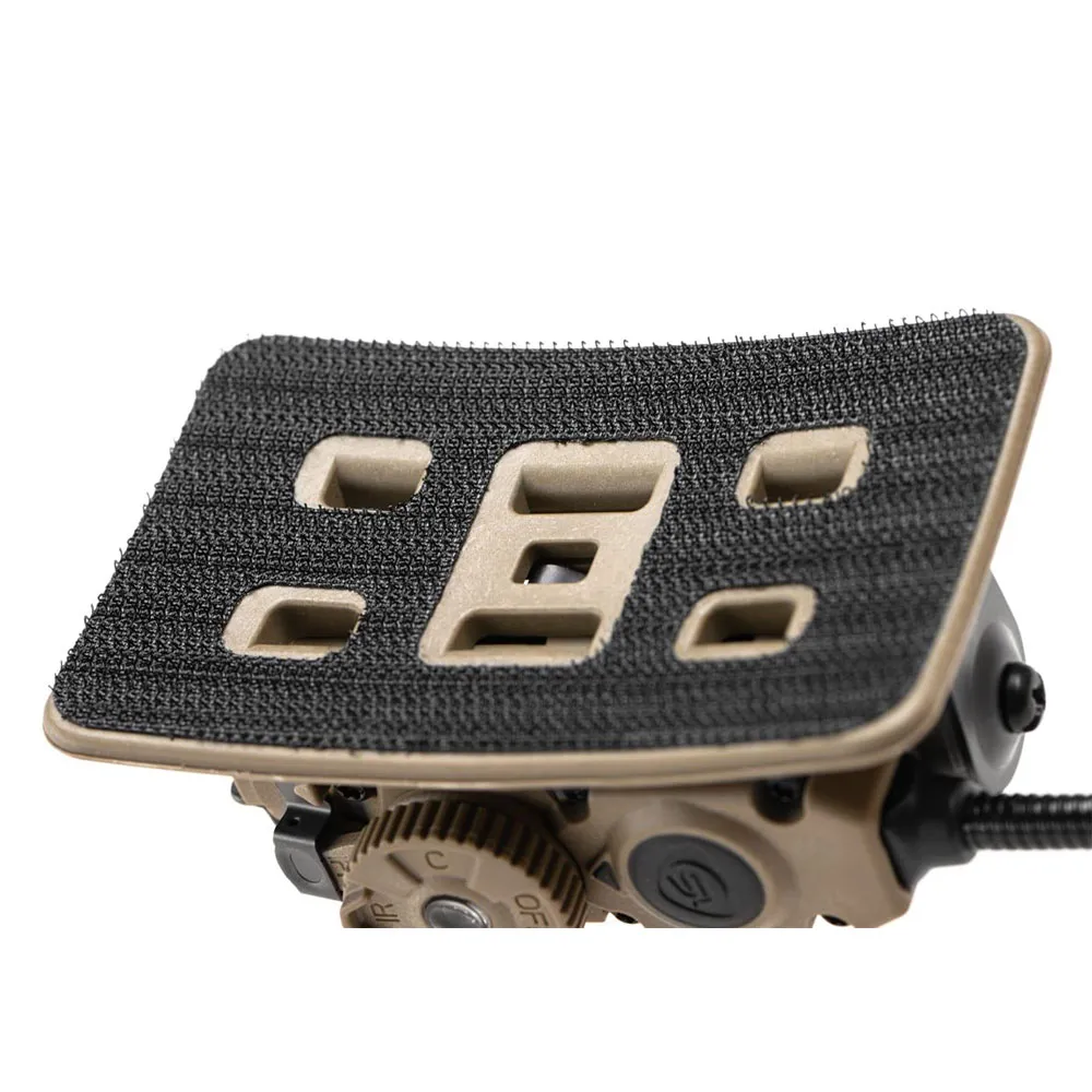 Integração Perfeita com o Equipamento: O robusto sistema E-Mount permite a fixação rápida e segura em trilhos ARC de capacete, fitas MOLLE ou o suporte de capacete incluído, tornando-o uma extensão natural de seu equipamento.