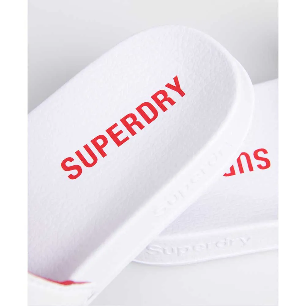 Apresentando os controles deslizantes de piscina esportiva do Superdry. Fabricados com sola acolchoada e alça para adicionar conforto, esses controles deslizantes são o complemento perfeito para seu guarda-roupa de primavera / verão. Terminou com um logotipo de assinatura costurado na alça e logotipo impresso no estrado.