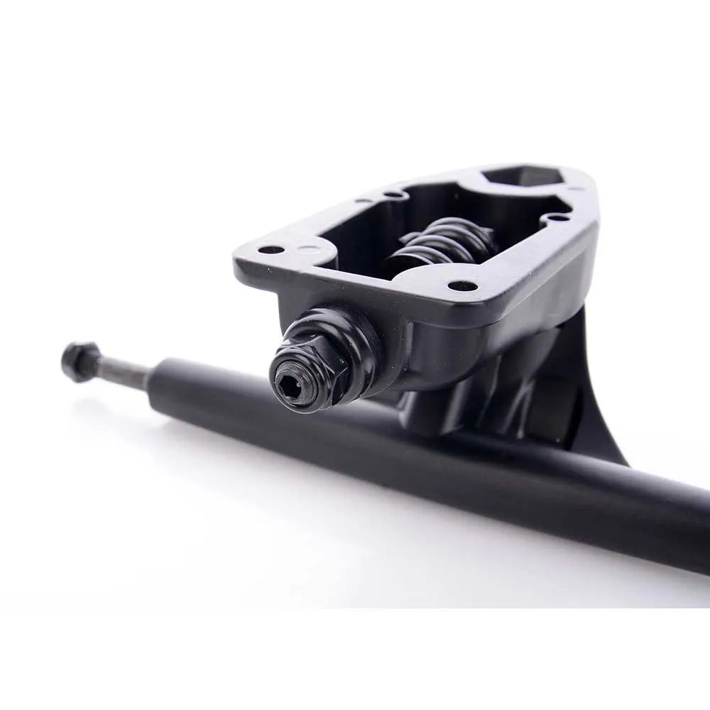Os trucks TEMPISH LDP II 8.5" são construídos com foco em durabilidade e desempenho. Fabricados em liga de alumínio de alta qualidade, esses trucks são construídos para suportar os rigores de estilos de pilotagem exigentes. A construção robusta garante desempenho duradouro, permitindo que você aproveite quilômetros incontáveis de carving e bombeamento. A largura do hanger de 8.5" proporciona estabilidade e controle ótimos, particularmente em velocidades mais altas e durante manobras agressivas. Essa plataforma mais larga permite uma sensação mais segura e previsível, inspirando confiança à medida que você ultrapassa seus limites.