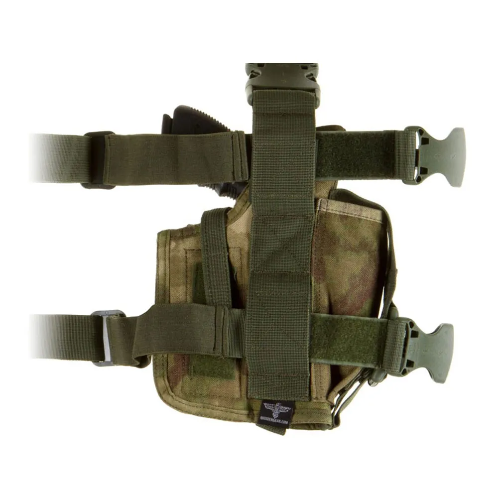SOF-hölstret är utrustat med tre integrerade magasinsfickor (en är överdimensionerad och kan också passa en ljuddämpare) och en integrerad benpanel - fäst med en bältesklämma och elastiska remmar runt låret. Vapnet säkras med en justerbar rem och tryckknapp. Det är tillverkat av 600D-tyg för att säkerställa hållbarhet samtidigt som det håller en låg vikt.