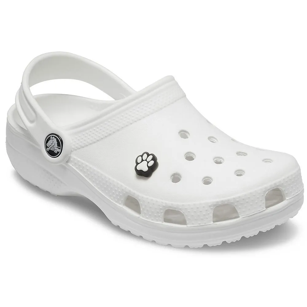 Pälsklingar är bäst! Denna enkla svartvita Jibbitz™-berlock med tassavtryck är perfekt för djurälskare av alla slag. Oavsett om du är en stolt hundförälder, en hängiven kattentusiast, eller helt enkelt en beundrare av alla varelser stora som små, låter denna berlock dig bära ditt hjärta på dina skor. Det är ett subtilt men kraftfullt sätt att visa upp din passion.