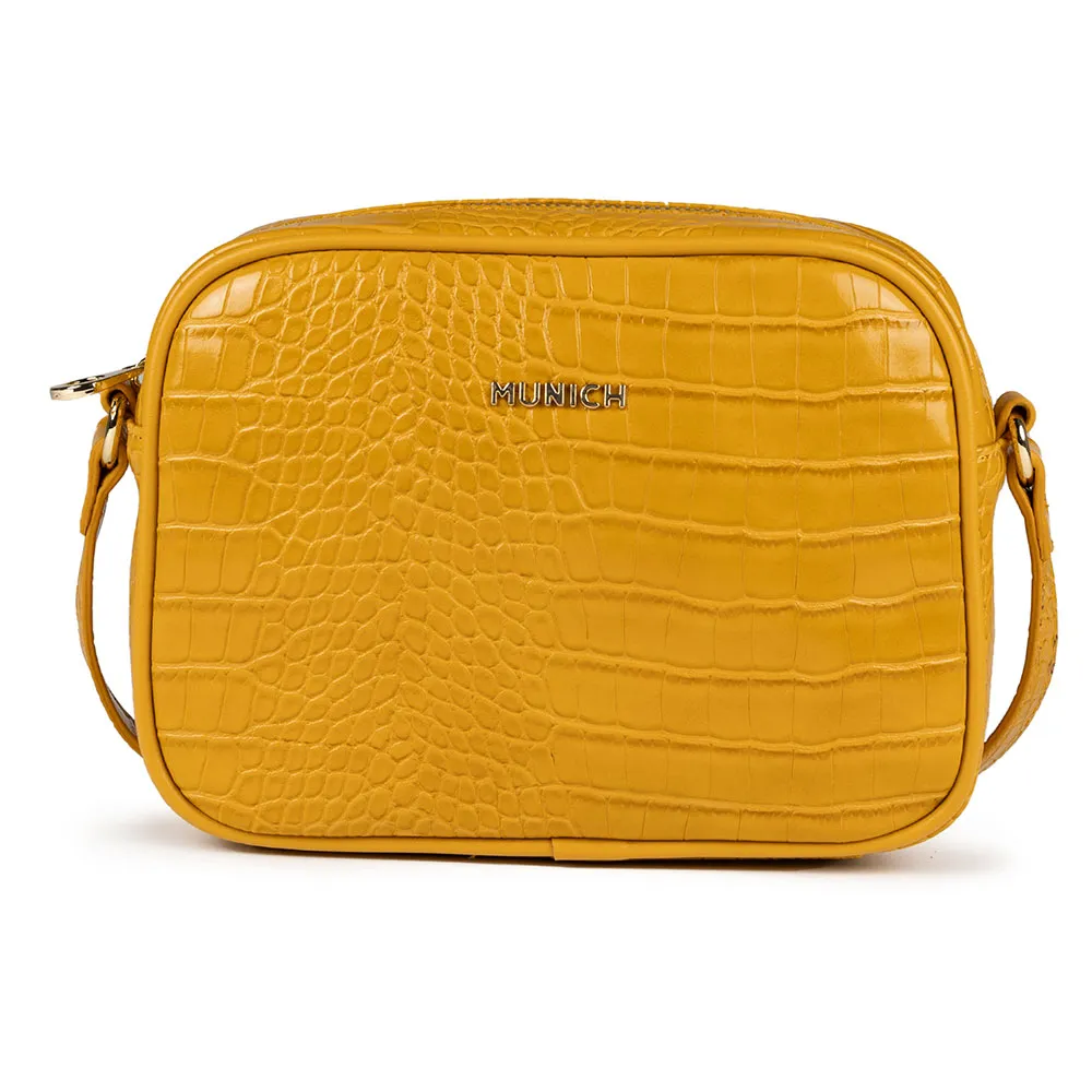 Axelremsväska tillverkad av krokodilpräglat syntetiskt läder. Less is more.