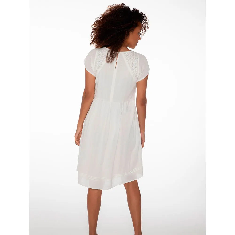 Det finns vackra broderi anglaise-inlägg på axlarna och spetsdetaljer på bröstet.