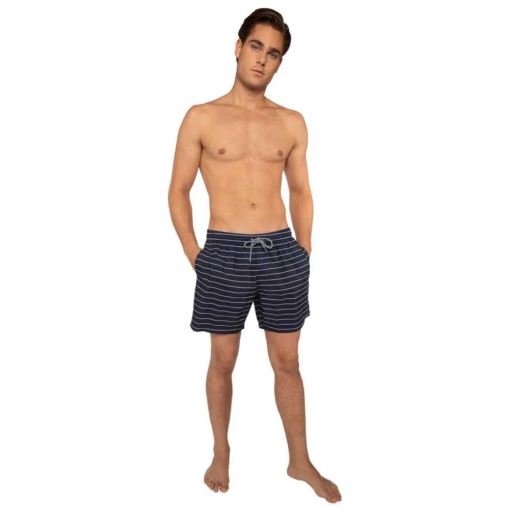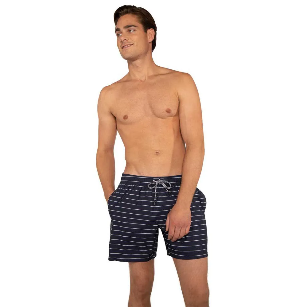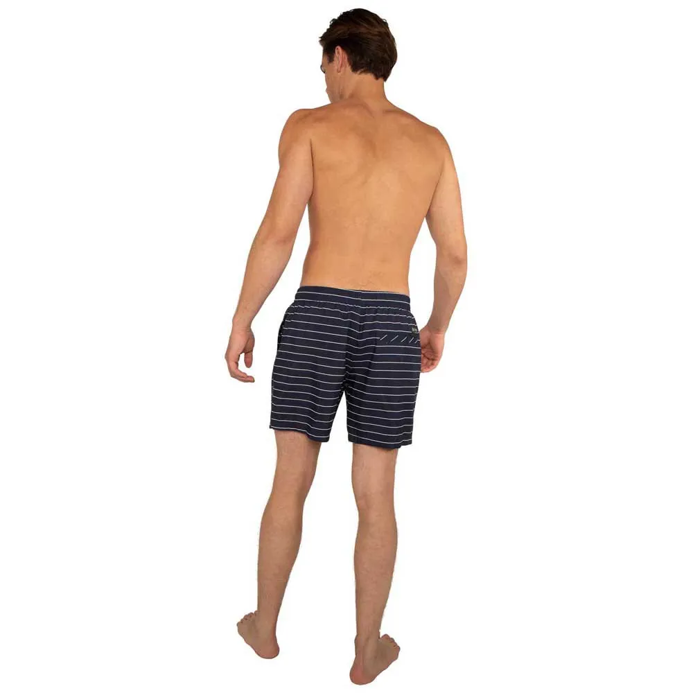 Sharif by Protest är din väsentliga strandshort för varje sommar. Sharif har ett elastiskt midjeband med en lindning av snören. Det lätta tyget är tryckt med en klassisk randig design. Bakfickan har dragkedja för att hålla dina väsentligheter säkra och sunda. Det finns en inre slip för extra skydd. Dessa fantastiska beachshorts är en del av vårt nya storlekstiltag De enda strandshortsna du behöver i sommar, Sharif by Protest.