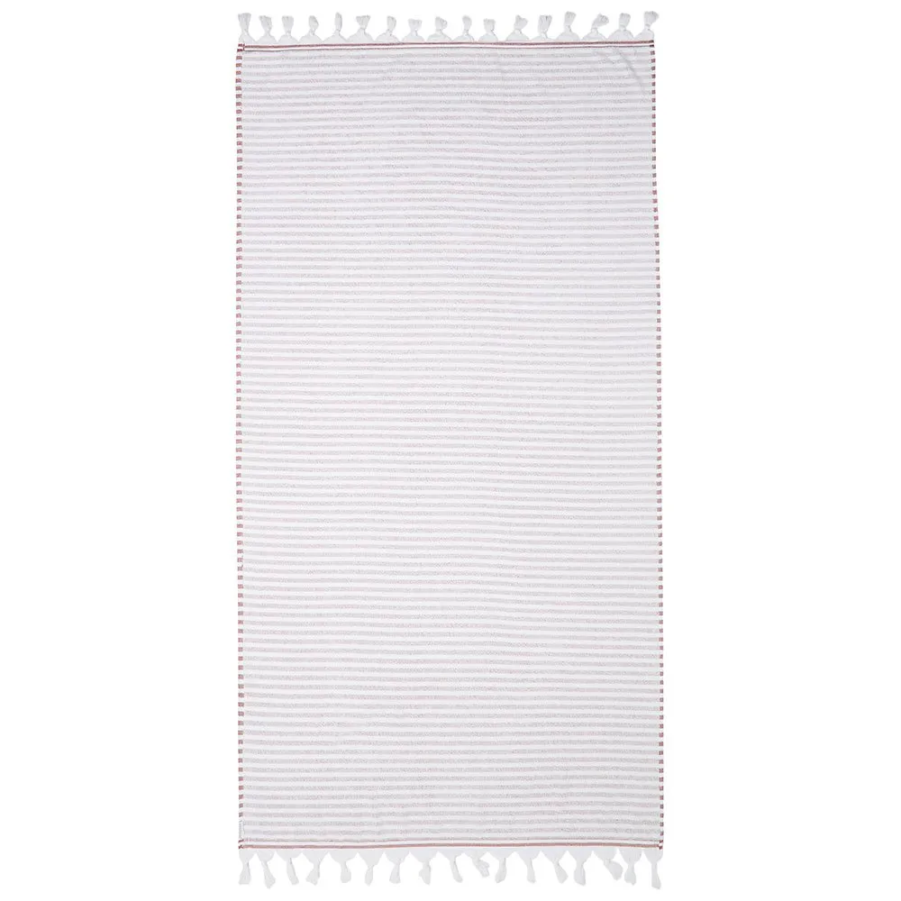 Möt PRTTHOLAV by Protest. Denna härliga handduk är gjord av 100% bomullsfrotté och mäter 180 cm gånger 90 cm. Den har en randig design och det finns tofsar längs de nedre kanterna. Denna handduk är lätt och lätt att ta med sig. Perfekt för dagar på stranden, PRTTHOLAV by Protest.