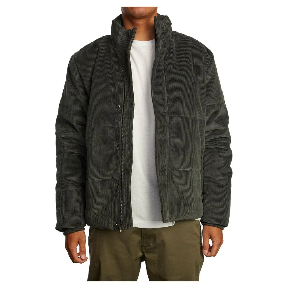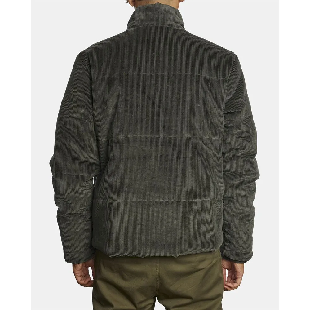 Normal passform, tryckt foder i polyestertaft med polyfill, framfickor med passform, invändig passformsficka, dolda metallknappar, 5 metalldragkedjor på stormflik, polyfill på krage, kraftig ribbstickad på stormmanschetter.