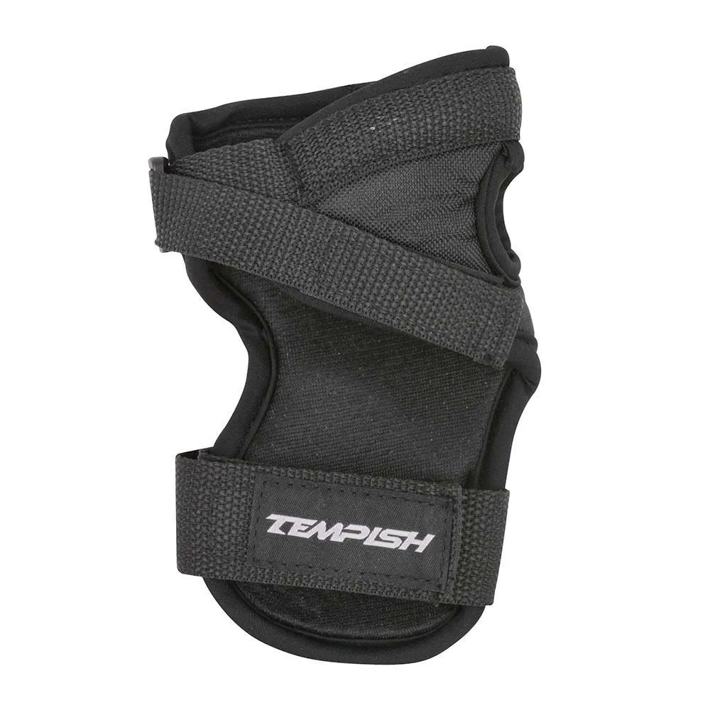TEMPISH TAKY set med 3 skydd för skridskoåkare ger ett säkert skydd av de viktigaste delarna av människokroppen där skadorna är vanligast (förutom huvud-hjälm). Setet består av ett handleds-, knä- och armbågsskydd. Handledsskyddet har en plaststoppning som skyddar handleden inifrån mot skador. Den inre delen av alla skydd är gjord av mjukt tyg, som absorberar fukten (svett) bra och glider försiktigt över huden. Handledsskyddet är ordentligt fäst med en tunnare rem på handflatan och en bredare rem på handleden med en TEMPISH-logga. Knä- och armbågsskyddens plastskal är mycket starkt och har en perfekt anatomisk form för att säkerställa en stabil position av skyddet, bekvämt när man åker skateboard och rör sig, och en hög nivå av fallskydd. Textildelen av skyddet är stadigt fäst i 3 nitpar. Texturdelen av skyddet består av tre delar: den första delen fästs med ett elastiskt band ovanför fogen och rör sig med den.