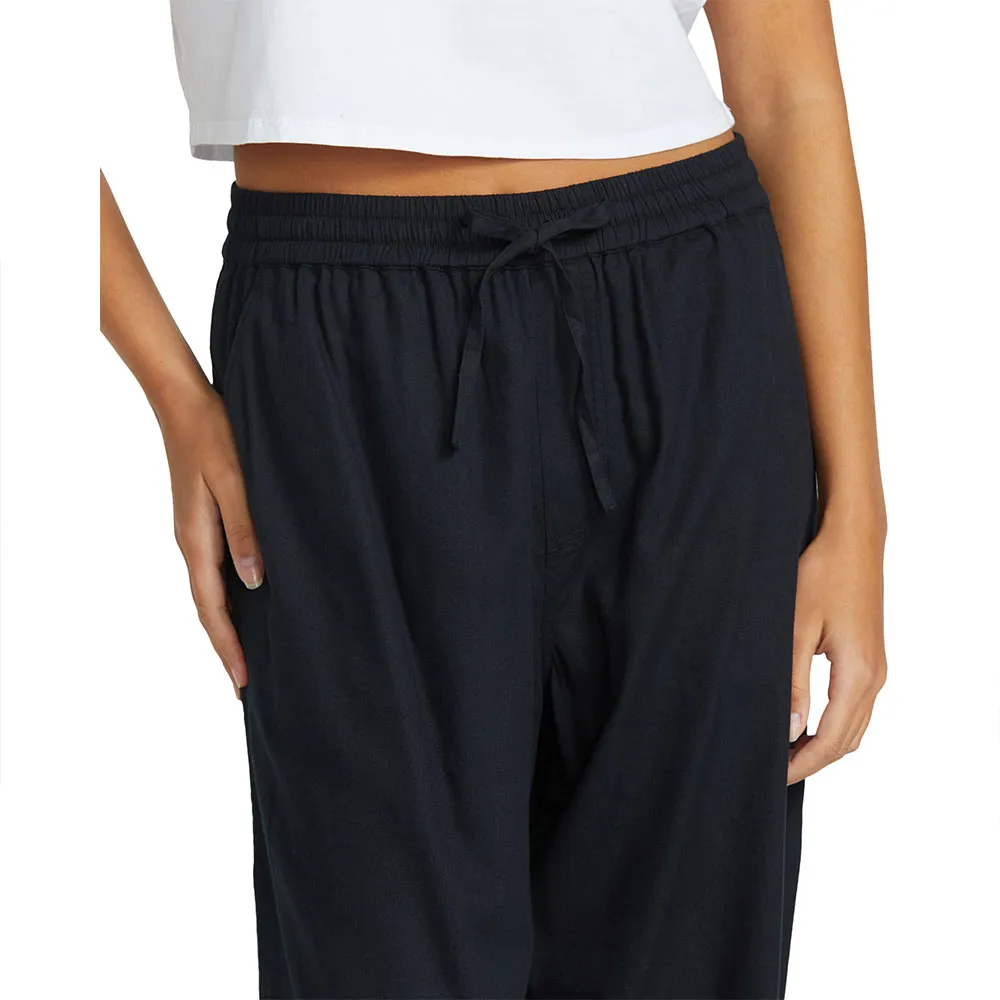 Signaturdetaljer från Volcom som klämmetikett och knäbroderi.